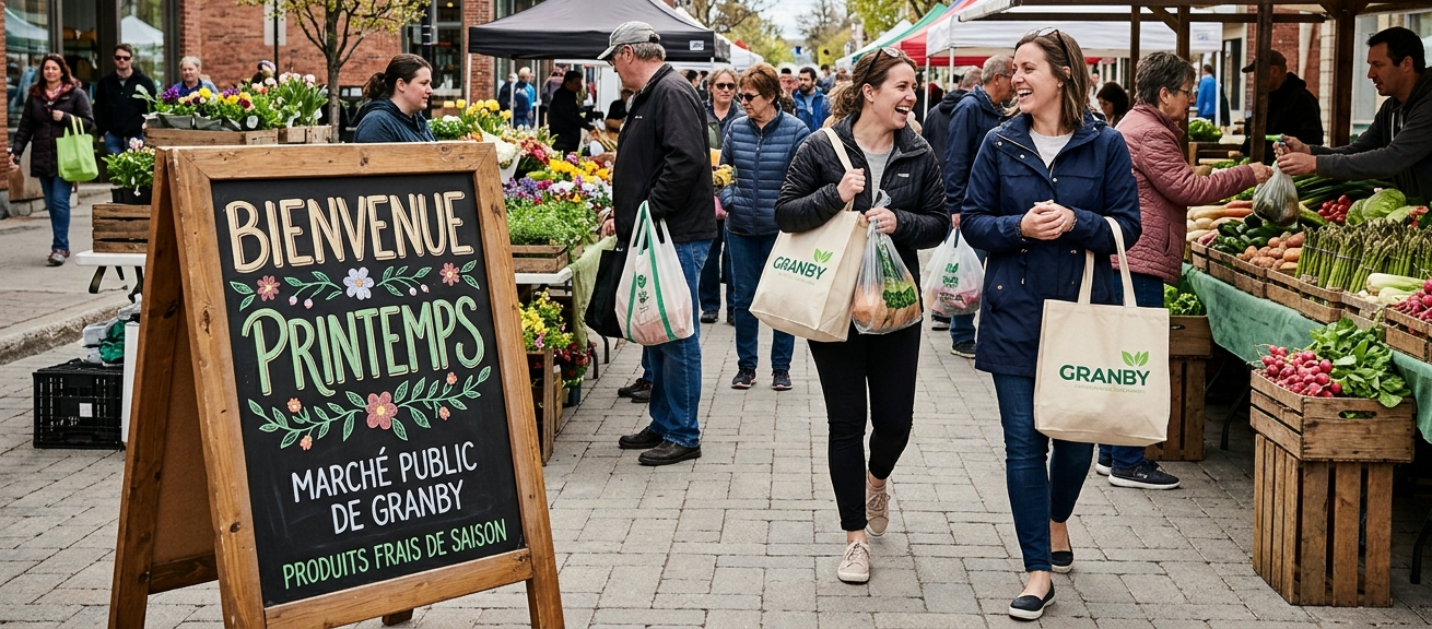 À Granby, le printemps transforme tout. Les rues du centre-ville s’animent soudainement : les familles flânent au marché public, les touristes découvrent le parc Daniel Jonhson et ses activités et les habitants sortent enfin de leur hibernation hivernale. Après des mois de froid, tout le monde a envie de nouveautés : vêtements légers pour boutiques, nouveauté dans les services professionnels (comme pour la période des impôts), ou outils de jardinage pour les quincailleries.